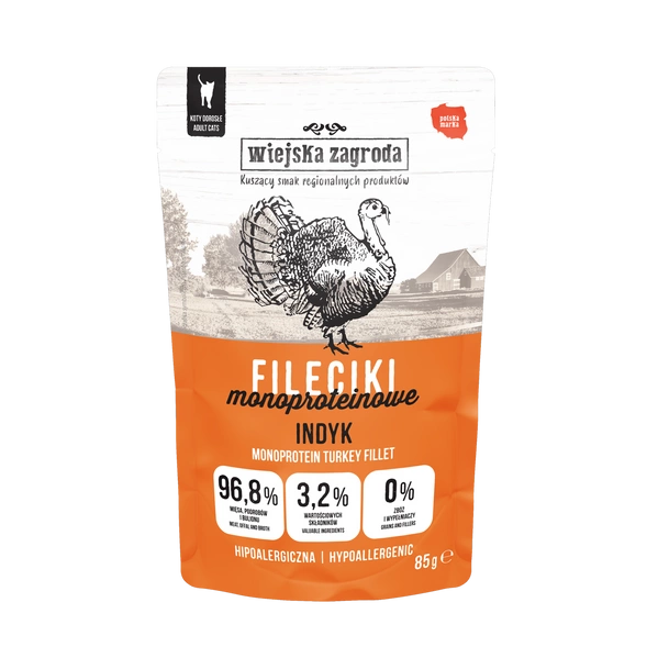 Wiejska Zagroda Karma mokra dla kota Fileciki Indyk (dorosły) 85g