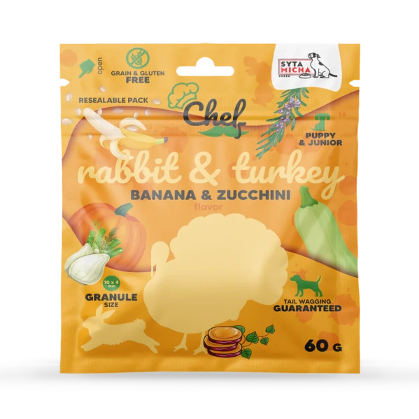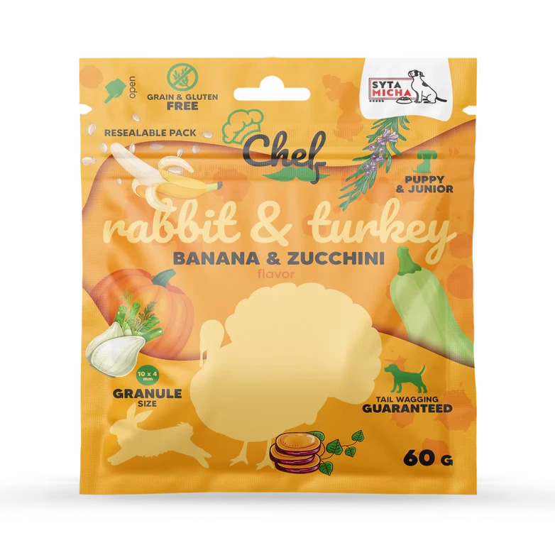 Próbka Syta Micha CHEF Puppy Królik i indyk, banan i cukinia 60g