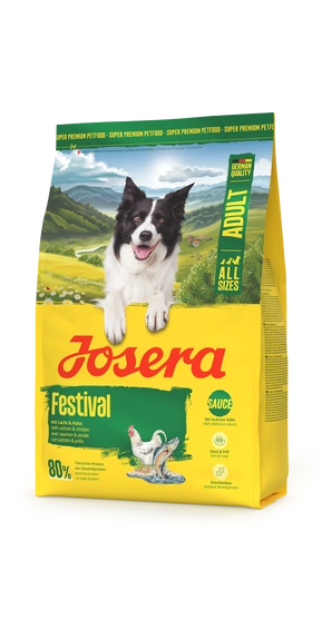 Dla najbardziej wybrednych smakoszy Josera Festival oferuje wyjątkowe menu: ta specjalna karma z sosem dla dorosłych psów może być podawana zarówno na sucho, jak i na mokro.