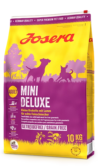- Josera Mini Deluxe - bezzbożowa karma z jagnięciną i warzywami dla dorosłych psów malych ras