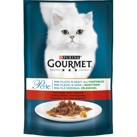 GOURMET™ Perle stworzył Mini Fileciki w Sosie z Warzywami: starannie dobrane składniki przygotowane z troską o wyjątkowy smak, pocięte na małe fileciki i podawane w pysznym sosie z warzywami, aby zachwycić wyrafinowane podniebienie Twojego kota. Mini Fileciki w Sosie od GOURMET™ Perle, elegancka pokusa dla wyjątkowych doznań smakowych każdego dnia.