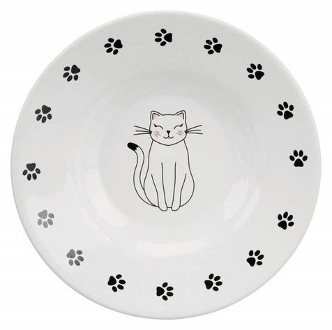 Miska ceramiczna dla kotów o spłaszczonej mordce została wykonana z ceramiki, dzięki czemu jest stabilna. Jej delikatnie uniesione krawędzie pozwalają mruczkowi na bezstresowe pobieranie pokarmu i picie wody.