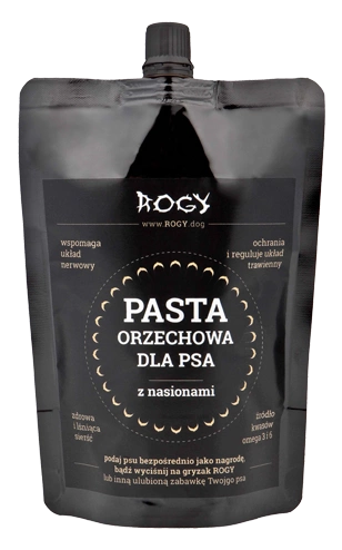 Naturalna pasta orzechowa ROGY to prawdziwy superfood dla psa – stworzona z mielonych orzeszków ziemnych, siemienia lnianego i pestek dyni. Nie tylko poprawia wygląd sierści, ale także reguluje trawienie, wspiera układ nerwowy i chroni wątrobę. Dzięki łatwemu podaniu i miękkiej konsystencji idealnie sprawdza się jako: