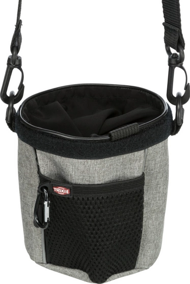 Aby uniknąć wysypywania się smakołyków warto posiadać wygodną i praktyczną, zamykaną skrętnie saszetkę na przysmaki. Regulowany pasek o regulowanej długości 84-146cm pozwoli przewiesić torebkę swobodnie przez ramię. Saszetkę można także zaczepić do paska odczepiając pasek naramienny.