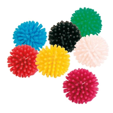 Zabawka dla kota. Kolczasta piłeczka – jeżyk. Niewielki rozmiar piłki umożliwia kotom chwytanie jej w łapki. Każda zabawa może być bardziej urozmaicona, dzięki kolorowej piłeczce, przypominającej jeżyka. Zabawka jest wykonana z trwałego i wytrzymałego winylu.