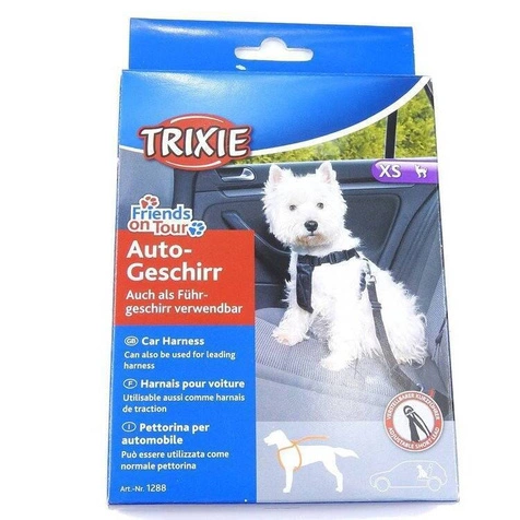 - Szelki samochodowe dla psa zwiększające bezpieczeństwo podczas podróży.