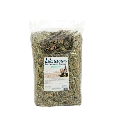 Sianko luksusowe to sianko łąkowe najwyższej jakości, wytworzone w tradycyjny i naturalny sposób. Sianko zbierane jest z wysokiej klasy naturalnych łąk. Trawy dobieramy tak, aby zawierały grube i cienkie źdźbła. Po skoszeniu sianko jest suszone na słońcu, leży na łące w letnie bezdeszczowe dni, dzięki czemu zachowuje delikatnie zielony kolor oraz łąkowy aromat.