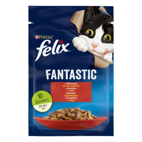 Felix Fantastic – Wołowina w galarecie to pełnowartościowy posiłek, który codziennie dostarcza Twojemu kotu energii, zdrowia i niezapomnianych smakowych doznań.