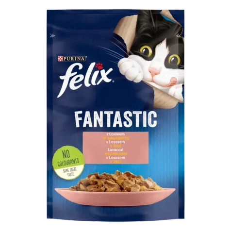 Felix Fantastic to pełnoporcjowa, zbilansowana karma mokra dla dorosłych kotów. Delikatne kawałki mięsa w soczystej galaretce z dodatkiem łososia to posiłek, który łączy wyśmienity smak z wartościami odżywczymi, wspierając codzienną energię i zdrowie pupila.