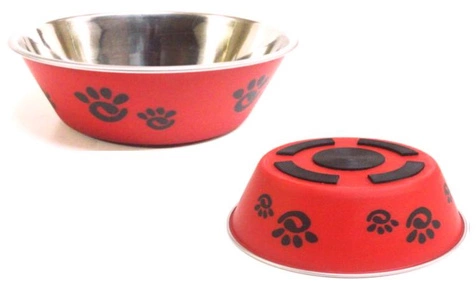 Miska metalowa pokryta plastikową warstwą z gumowym dnem, czerwona z łapką 21,5cm