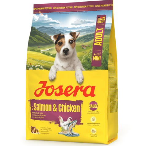 Nawet nasi mali czworonożni przyjaciele nie odmawiają smacznego jedzonka w misce - dlatego teraz może się tam znaleźć coś naprawdę smacznego: Josera Mini Salmon & Chicken! Ta karma dla dorosłych, małych psów jest wersją mini naszej popularnej suchej karmy Festival - i również jest bezglutenowa.