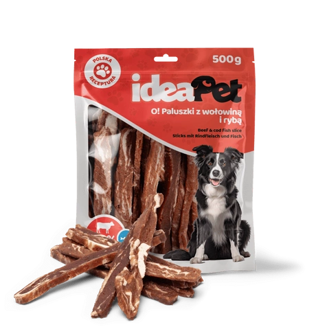 ideaPet Paluszki z wołowiną i rybą to pyszny przysmak dla psa, który łączy wołowinę, mięso z kaczki, dorsza oraz płuca wołowe, oferując wyjątkowy smak i wysoką wartość odżywczą. Wołowina i płuca wołowe dostarczają psu białka wspomagającego rozwój mięśni oraz regenerację tkanek, a mięso z kaczki jest lekkostrawne, pełne aminokwasów i minerałów. Dorsz, bogaty w kwasy omega-3, wpływa korzystnie na zdrowie skóry i sierści. Kształt paluszków sprawia, że są one łatwe do żucia, zapewniając psom długotrwałą przyjemność.