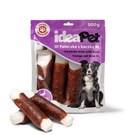 Przysmak IdeaPet Pałeczka z kaczką XL to pyszna, wysokobiałkowa przekąska dla psów, która łączy 60% skóry wołowej i 30% mięsa z kaczki. Skóra wołowa zapewnia długotrwałe żucie, pomagając utrzymać zdrowe zęby i zaspokajając naturalną potrzebę gryzienia, a mięso z kaczki dostarcza psu niezbędnych składników odżywczych. Kształt pałeczki sprawia, że jest idealna do długotrwałej zabawy i zapewnia psu radość z gryzienia.