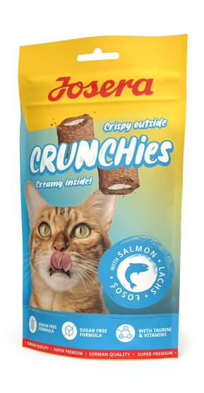Oczywiście, że nasze koty uwielbiają ryby! A Josera Crunchies with Salmon zawierają w sobie pysznego łososia. Który kot mógłby się temu oprzeć? Kiedy chrupiąca skorupka pęka w pyszczku, kremowe nadzienie jest prawdziwą ucztą dla podniebienia. Bezzbożowe i niskokaloryczne przysmaki są idealną przekąską na każdy dzień - i nie tylko.